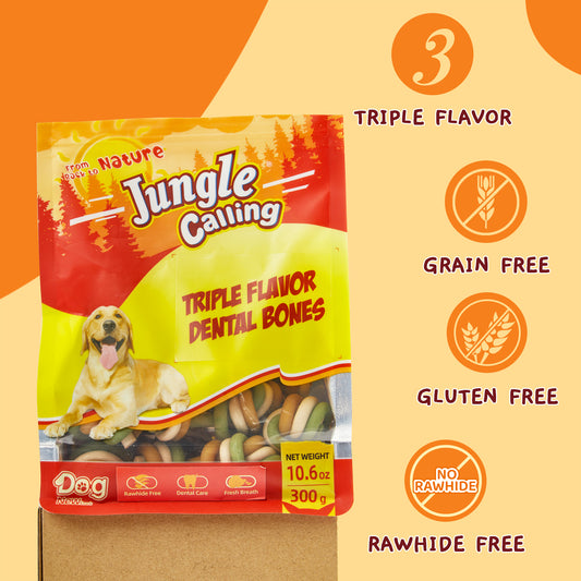 Rawhide Free Triple Flavor Dental Chews for Dogs, Teeth Clean Dog Bones 10.6 oz