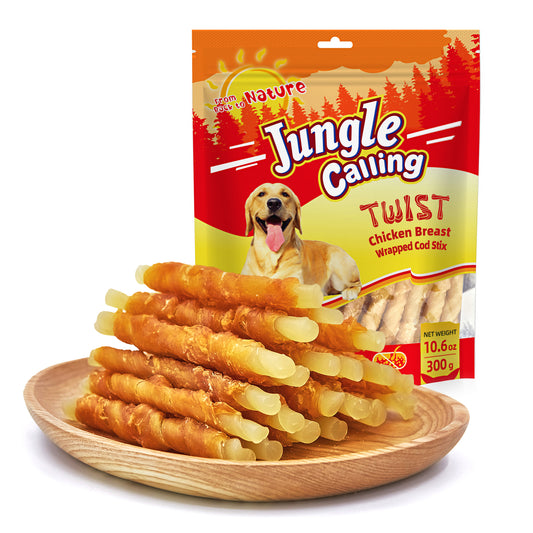 Rawhide Free Healthy Treats for Dogs, Chicken Wrapped Cod Sticks Dog Treats, Soft Chewy Treats for Training Rewards, 10.6 oz (Chicken)