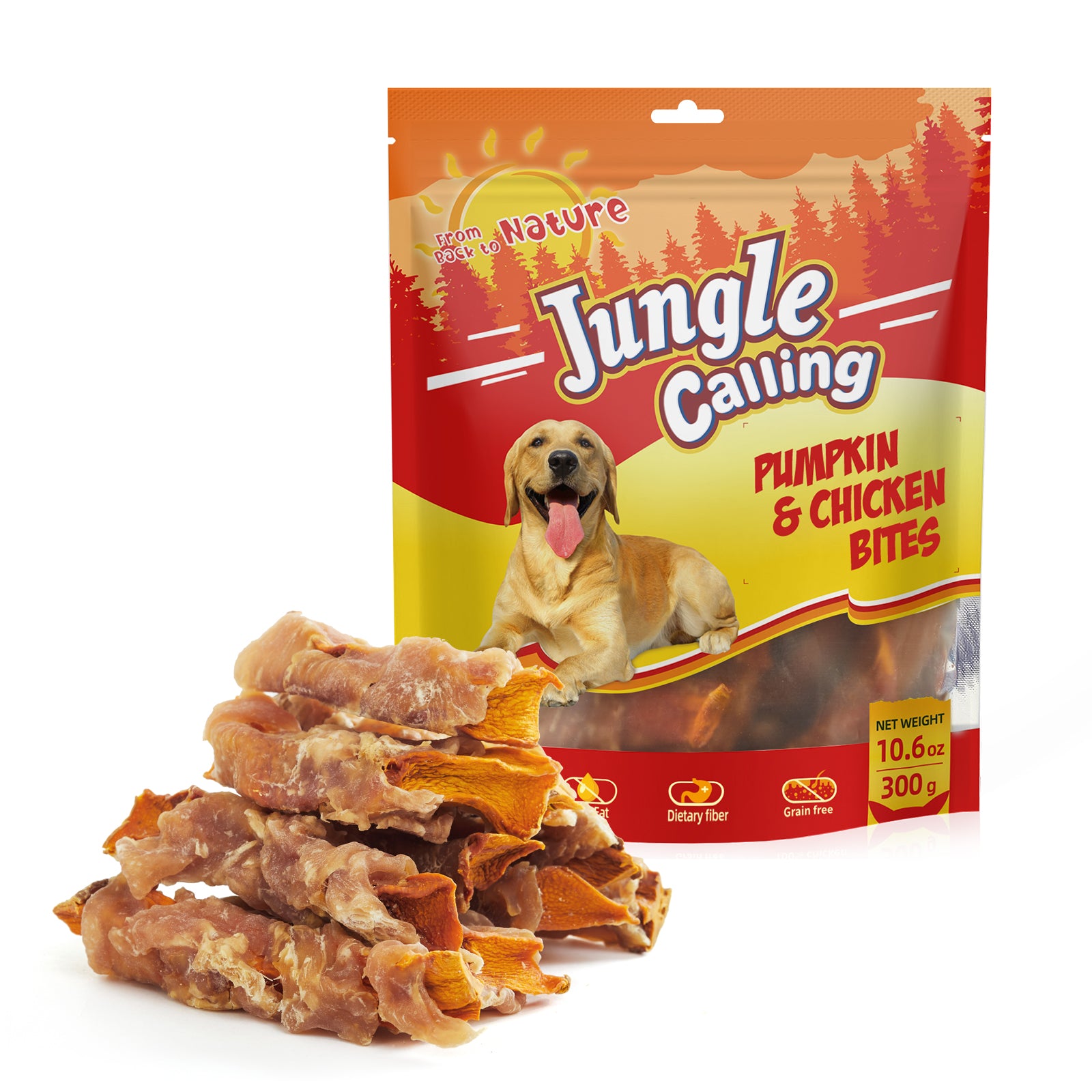 - 【Gluten and Grain Free】Jungle Calling chicken wrapped pumpkin snacks contain no artificial colors, additives and are free of gluten and grain.