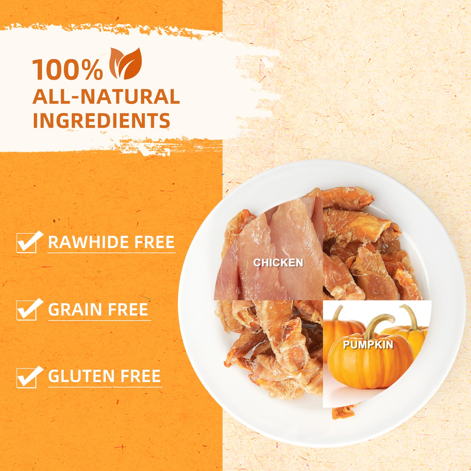 - 【Healthy Dog Treats】 Chicken provide high protein and rich nutrients, compared to beef, pork, dogs digest better, and the fat content is low and hypoallergenic. Fresh pumpkin is low in fat and rich in vitamins and minerals, and is also a great source of dietary fiber, which helps support the dog's digestive system and weight loss, maintain gastrointestinal health, protect the eyes, and regulate the digestive system, which is also suitable for overweight dogs.