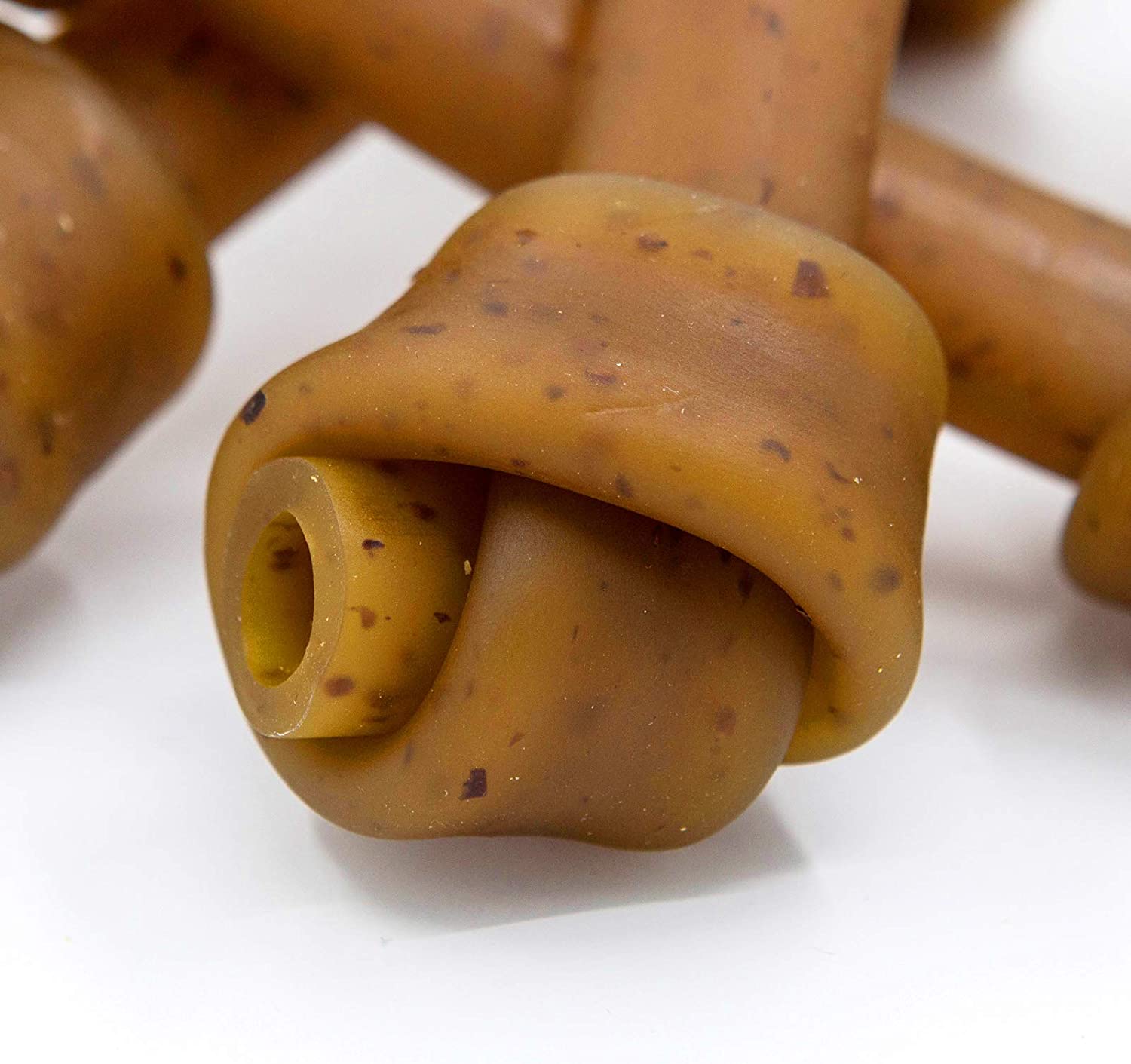 - [Dog Loves to Chew this Bone] The knotted bone pattern is comfortable to hold and bite. These chews are devoid of rawhide and gentle on the stomach. Opting for non-rawhide dog chew bones is a better and safer choice.